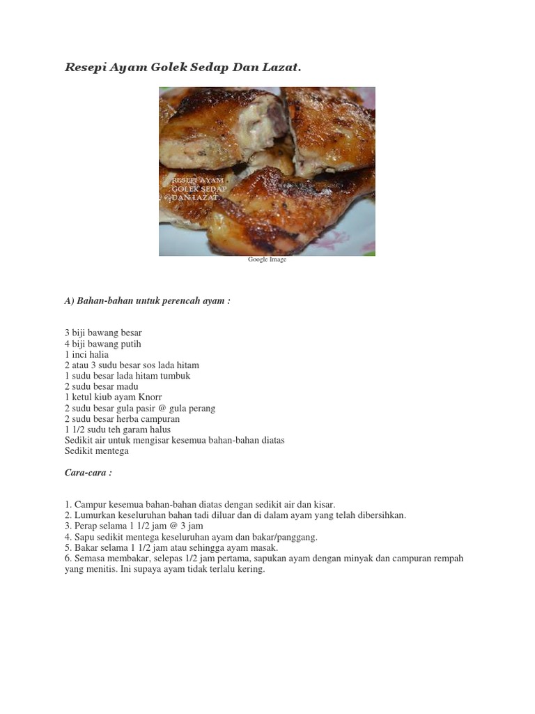 Resepi Ayam Golek Sedap Dan Lazat Pdf